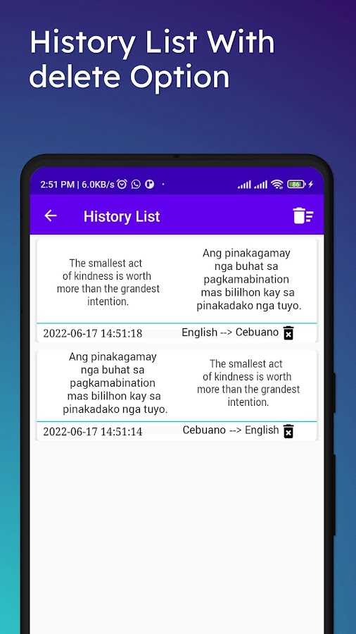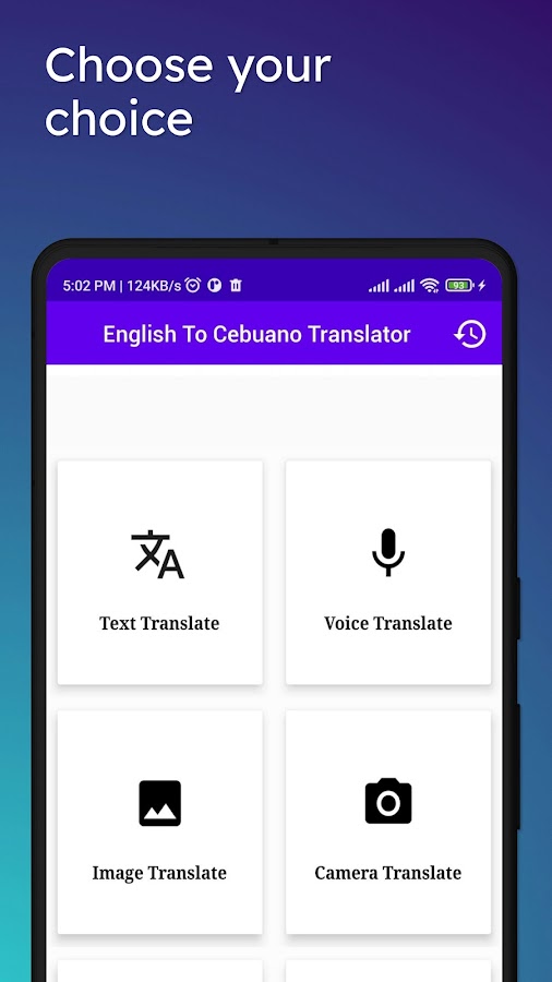 Переводчик с английского на кебуанский для перевода текста, перевода слов, перевода абзацев, а также перевода полных предложений. Это приложение также используется для перевода с английского на кебуанский и для перевода с кебуанского на английский, а также для слов, текста и полных предложений.