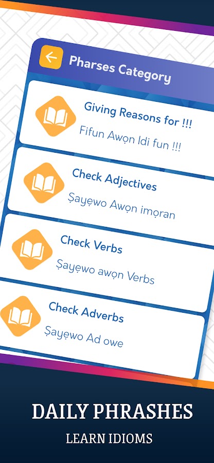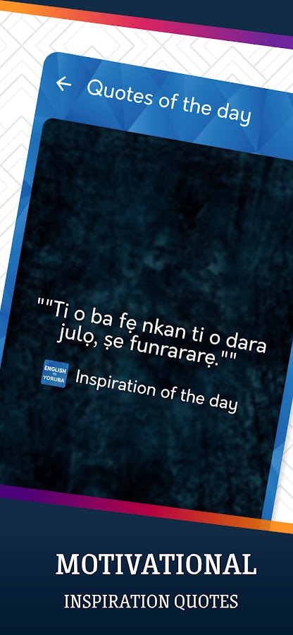 ● Бонусная функция: Мотивационные слова: ежедневное новое вдохновение для изучения языка йоруба и слов, которые сделают вашу жизнь позитивной по отношению к обучению.