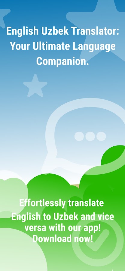 O’zbek Ingliz Tarjimon ilovasini hozir yuklab oling va til o’rganganingizni yanada qulay va tezlashtiring! Bu ilova o’zbek tilini anglashni osonlashtiradi va ingliz tilini o’rganishni juda qulay qiladi. Bu sizning til o’rganganingizni osonlashtiradi va yangi tillar o’rganishga imkon beradi. O’zingizni o’zlashtiring va dunyo bo’ylab so’zlar, gaplar va matnlar bilan do’stlaringizga qo’shiling.