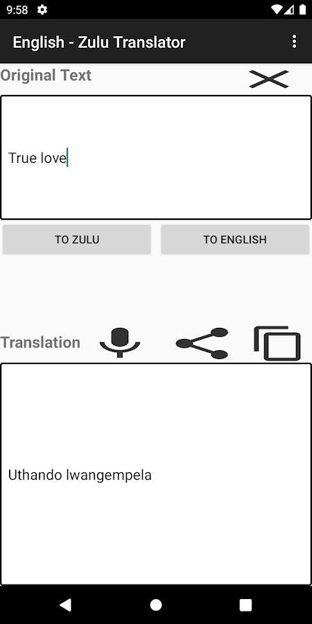 Также переводите любое зулусское слово / предложение на английский.