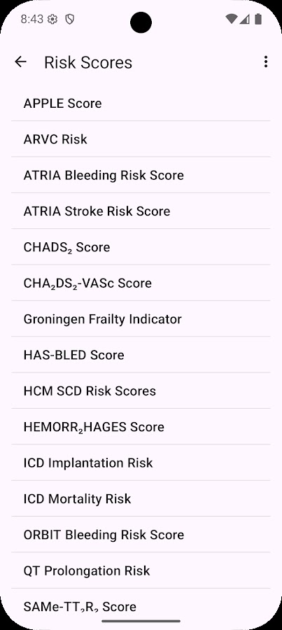 — баллы риска кровотечения (HAS-BLED, HEMORR2HAGES, ATRIA, SAMe-TT2R2, ORBIT)