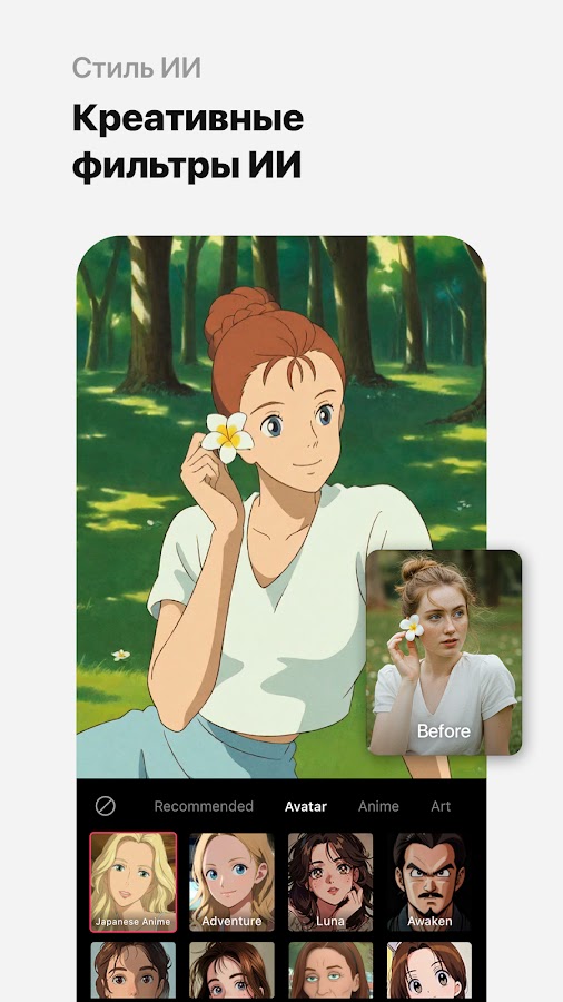 ・ Фильтр ИИ: Создавайте собственных персонажей в различных стилях