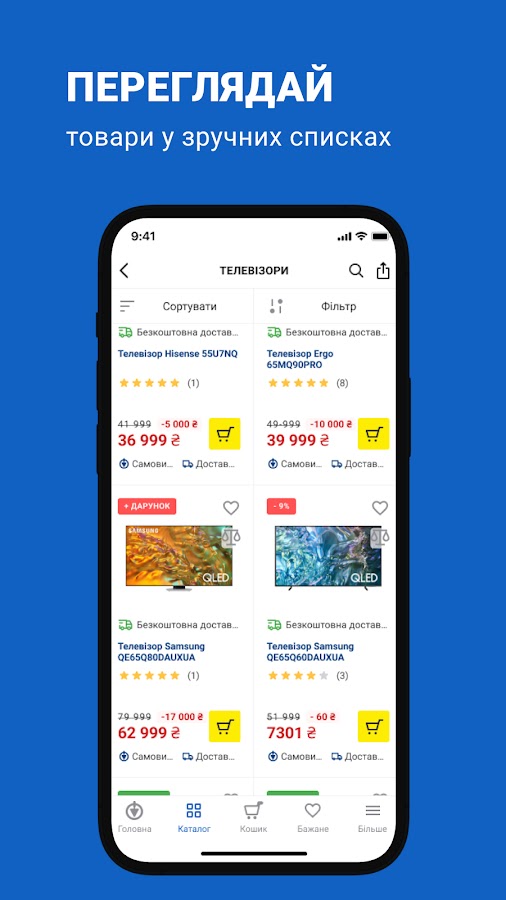 В приложении «Епіцентр» легко покупать в режиме 24/7, не выходя из дома, офиса, автомобиля или общественного транспорта. Вы можете выбрать нужный товар в каталоге, используя фильтры и сортировку. Оформление покупки займёт несколько секунд. С приложением вам не придётся каждый раз вводить контактные данные — нужно лишь выбрать удобный способ оплаты и доставки. Кстати, оплатить покупку можно при получении, картой на сайте или через платёжную систему Apple Pay.