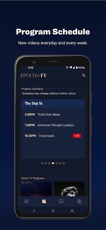 EPOCH TV, новая платформа потокового видео, предназначена для людей, которые хотят получать правдивые новости без цензуры. Наш контент включает в себя подробный анализ новостей, интервью и документальные расследования. Вы можете смотреть наши эксклюзивные программы в прямом эфире и по запросу на своем любимом устройстве в любом месте и в любое время. Всегда есть что открыть, новые телешоу и документальные фильмы добавляются каждую неделю!
