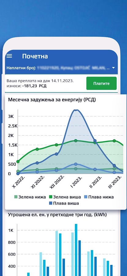 Пользователи приложения могут получить доступ к просмотру и электронной оплате счетов для нескольких точек измерения в разных регионах Республики Сербия через одну учетную запись.