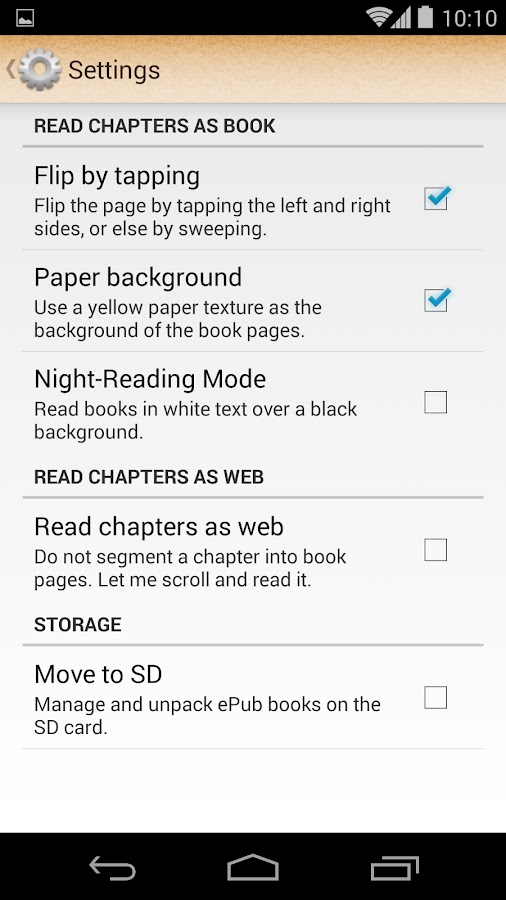 — Различные режимы работы: Вы можете выбрать для чтения EPUB файлы, веб-страниц или книг. Если вы решили читать EPUB книги переключения страниц, можно дополнительно задать поворот страницы, нажав или подметать.