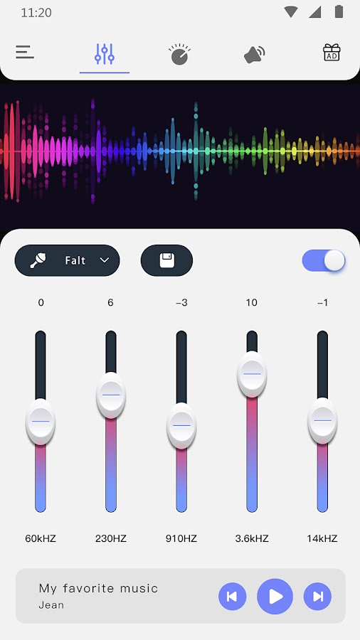 • Сохраняйте большое количество личных настроек музыкального эквалайзера.