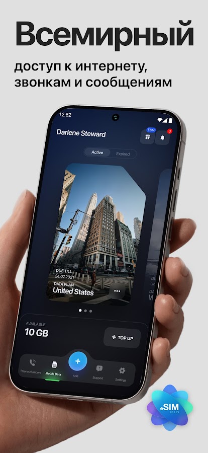 🌍 eSIM Plus — виртуальная сим карта для путешествий и 2-я линия для работыОставайтесь на связи, где бы вы ни были. Путешествуете за границей, работаете удалённо или нужен 2 номер телефона для звонков и сообщений по работе? eSIM Plus — это выгодные роуминг звонки, SMS и мобильный интернет через виртуальную сим карту, глобальное покрытие мобильной сети и виртуальный номер в более чем 130 странах — без необходимости менять сим карту.