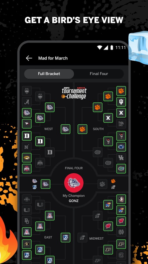 — Используйте ESPN Bracket Predictor и Bracket Analyzer, чтобы вывести свой опыт составления турнирных сеток на новый уровень с помощью инструментов и данных, необходимых для получения преимущества над соперниками.