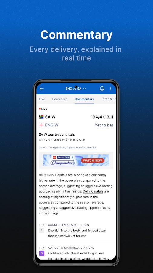 Следить за крикетом в новом приложении ESPNcricinfo будет легко, и оно обеспечит беспроблемную работу через Интернет и приложение. Самый широкий охват крикета в мире
