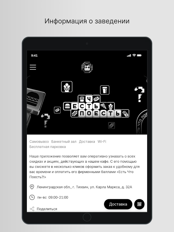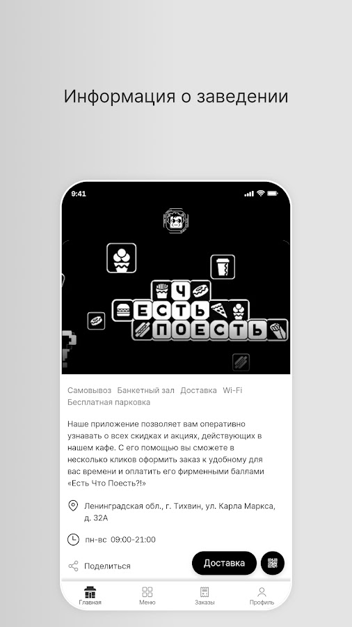 Наше приложение «Есть Что Поесть?!» — это идеальный инструмент для всех любителей вкусной и разнообразной еды, кто ценит свое время и комфорт. Установив наше приложение, вы сможете легко и быстро заказать любимые блюда из нашего кафе.