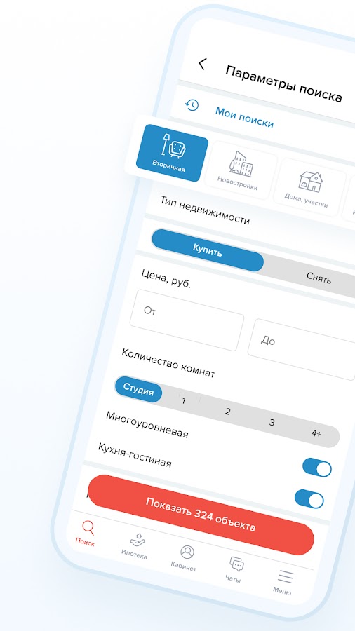 В приложении легко купить коттедж, квартиру, частный дом: достаточно просто записаться на просмотр онлайн. А еще можно взять ипотеку дешевле, чем в банке, подать свое объявление и в любой момент связаться с помощником: экспертом по недвижимости.
