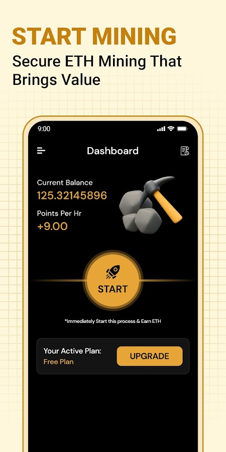 ETH Cloud Miner позволяет просматривать и отслеживать статистику облачного майнинга Ethereum в любое время и в любом месте. Это приложение не использует ресурсы процессора или видеокарты вашего устройства — весь майнинг происходит на удалённых серверах.