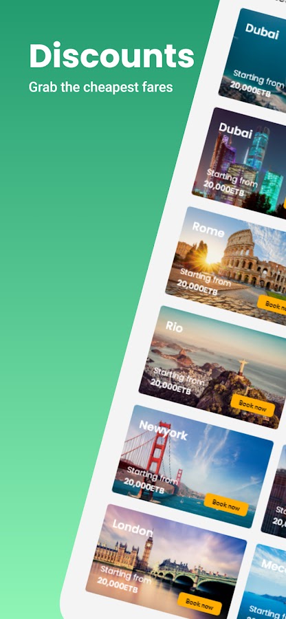 Путешествуйте как никогда раньше. Сделайте свое путешествие более совершенным с помощью нового мобильного приложения «Эфиопские авиалинии» и получите скидку до 10%. По-новому определите свои путешествия – загрузите сейчас.