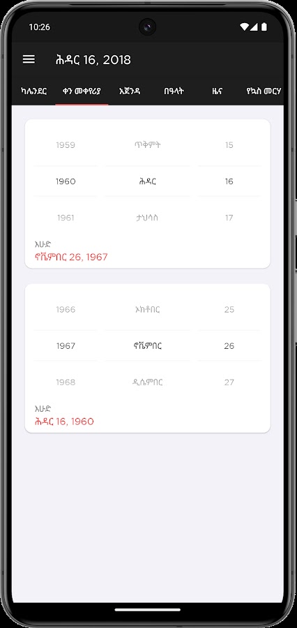Лучшее приложение-календарь для эфиопов по всему миру. Управляйте своим расписанием, отслеживайте праздники, будьте в курсе событий и конвертируйте даты — всё в одном удобном приложении.