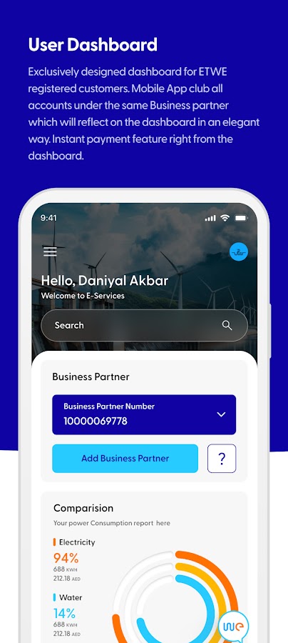 Etihad WE mobile — это интуитивно понятное приложение, которое предоставляет клиентам Etihad WE информацию в реальном времени об их счетах Etihad WE в дополнение к перечисленным ниже услугам.