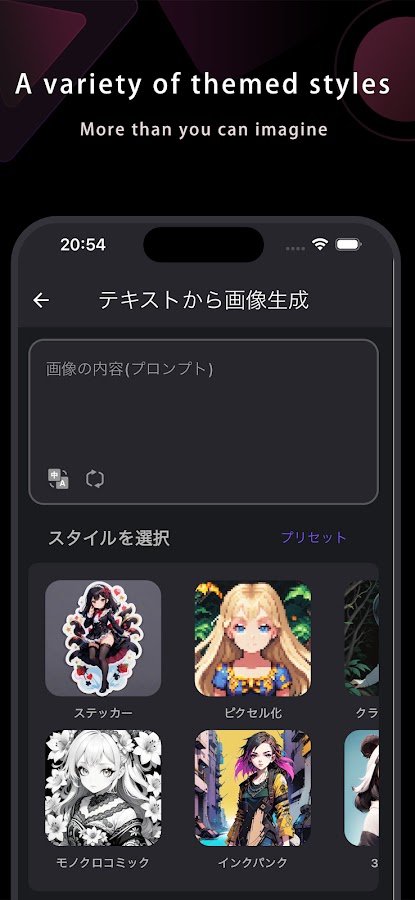 ・Симуляция стиля: Исследуйте и применяйте различные художественные стили, такие как Импрессионизм, Абстракция, Современное искусство и другие.