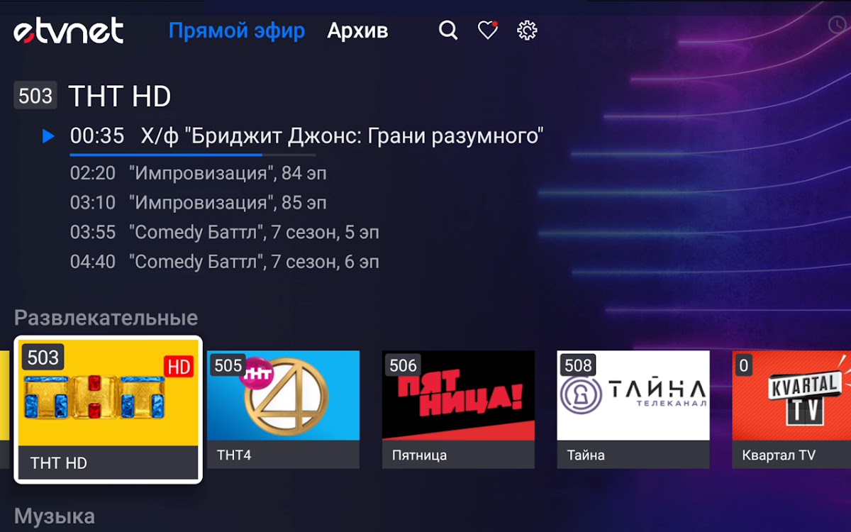 Вам нравятся комедии, боевики или драмы? На eTVnet вы найдете лучшие фильмы любого жанра, концерты, юмор, сериалы и спорт!