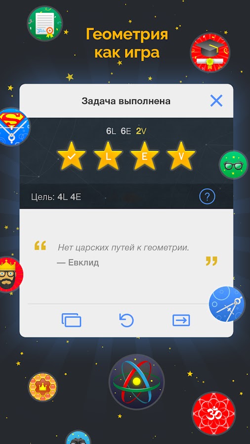Euclidea — это коллекция интерактивных задач по геометрии в виде игры. Рекомендуется школьникам, учителям и всем любителям математики. Развивайте свою логику, интуицию и воображение.