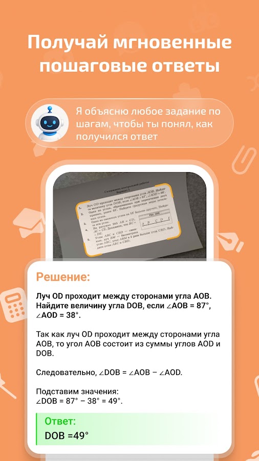 ✅ Уникальная функция — фото решебник: решает задания по фото, даже с листочков и скриншотов