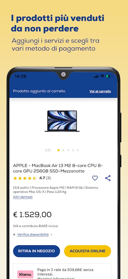 Благодаря простой и безопасной кассе вы можете приобретать бытовую технику, электронику, телефоны и многие другие товары непосредственно через свой смартфон с помощью Paypal, банковского перевода и платежных систем Visa, Mastercard и American Express. Кроме того, благодаря Klarna вы можете оплатить тремя удобными частями или продолжить финансирование, следуя пошаговой процедуре.