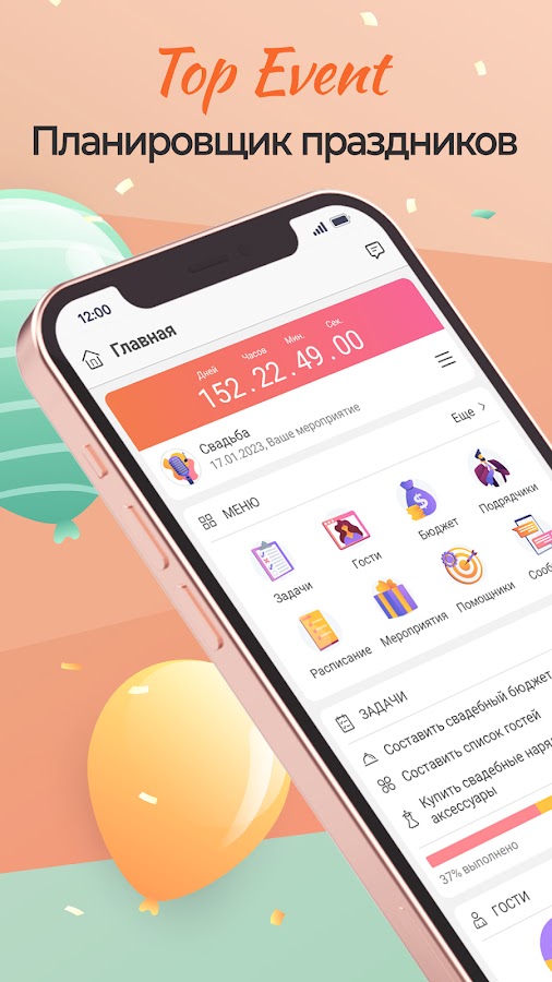 Хотите организовать день рождения или, может быть, вам нужно подготовиться к свадьбе или юбилею? Наш планировщик мероприятий – это то, что вам нужно! TopEvent – простое приложение для планирования любых праздников 🎈