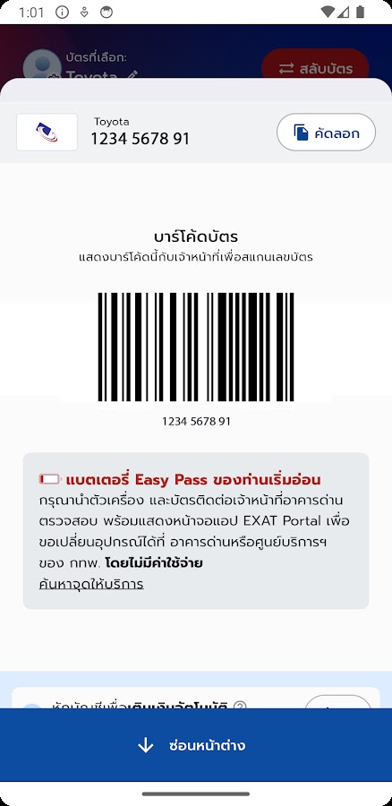 Карта: для проверки остатка баланса и использования Easy Pass.