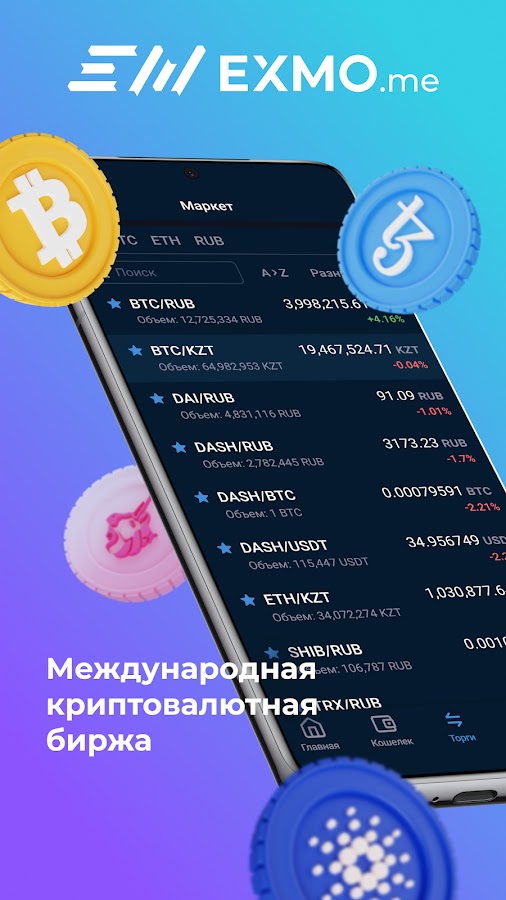 Скачайте приложение EXMO.me: покупай и торгуй BTC для Android бесплатно - последняя версия (3.83.0) уже доступна для установки на ваш телефон или планшет.