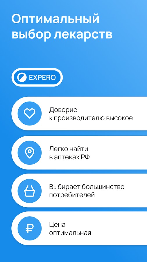 Ищете, где купить лекарство? Приложение «Expero: поиск лекарств и аптек» — ваш надежный помощник в поиске медикаментов, препаратов и аптек в России. Мы работаем в Москве, Санкт-Петербурге, Новосибирске, Бийске, Перми, Уфе, Нижнем Новгороде, Ставрополе и других городах России — чтобы каждый мог легко найти необходимое лекарство рядом с домом.