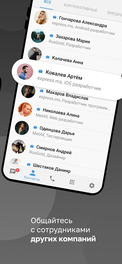 — Мгновенный поиск по ФИО, должности или тегам в адресной книге