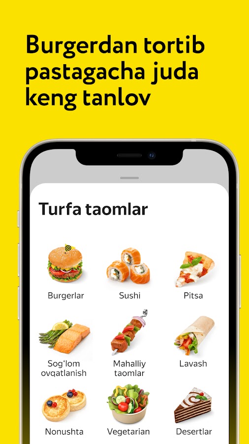 Ovqat pishirishga erinyapsizmi? Ishda tushlik qilishni xohlaysizmi? Og’ir paketlarni olib yurishni xohlamaysizmi? Xavotir olmang, biz sizga yordam beramiz. Express24 da siz barcha mazali va kerakli narsalarni topasiz: shirinliklar, osh, shashlik, sendvichlar, kruasan, qahva, sabzavotlar, kosmetika va boshqalar. Bitta xizmatda 700 dan ortiq restoranlar, 100+ do’konlar va 5+ bozorlar.