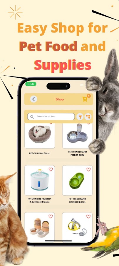 Наше приложение предоставляет огромный выбор товаров для домашних животных для всех видов домашних животных, таких как кошки, собаки, птицы, кролики, рептилии и многие другие.