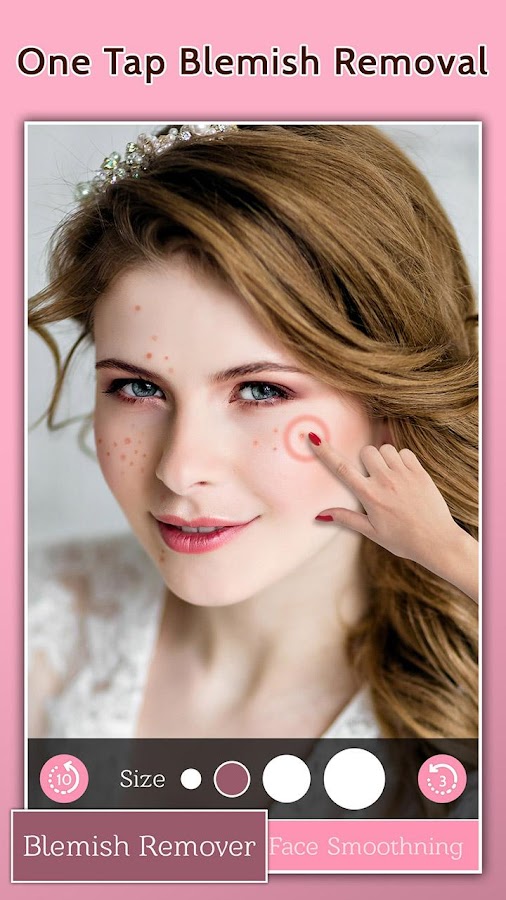 Face Blemish Remover легко справится с трудностями. Все, что вам нужно сделать, это выбрать области с пятнами, темными пятнами, отметками или прыщами, и приложение полностью удалит его.