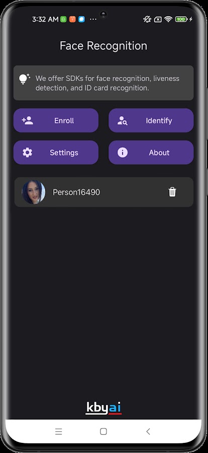 Это приложение демонстрирует функции, которые могут регистрировать и идентифицировать людей, а также проверять обнаружение живости лиц в режиме реального времени.