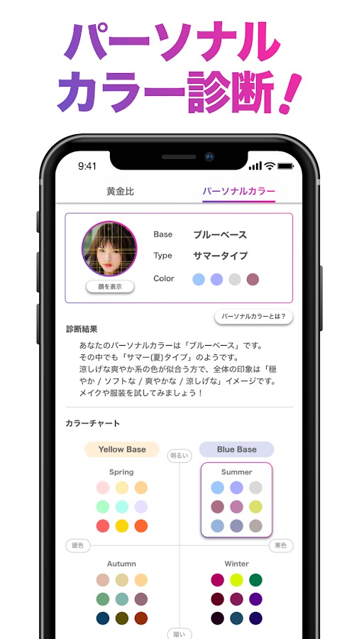 Описание 「FaceScore」顔のバランスを点数で採点 顔診断アプリ