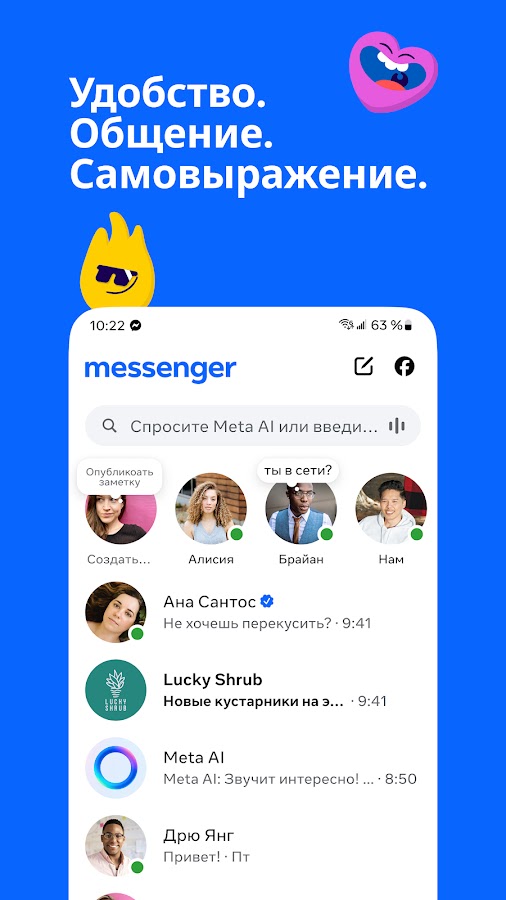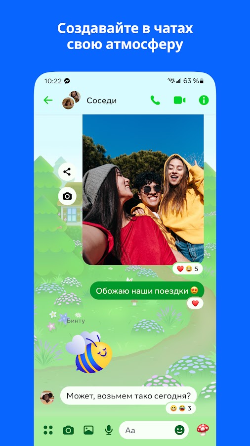 Messenger — это бесплатное приложение, позволяющее обмениваться сообщениями с кем угодно в любом месте. Оставайтесь на связи с друзьями и близкими, общайтесь с теми, кто разделяет ваши интересы, стройте сообщество и делитесь настроением с помощью одного приложения.