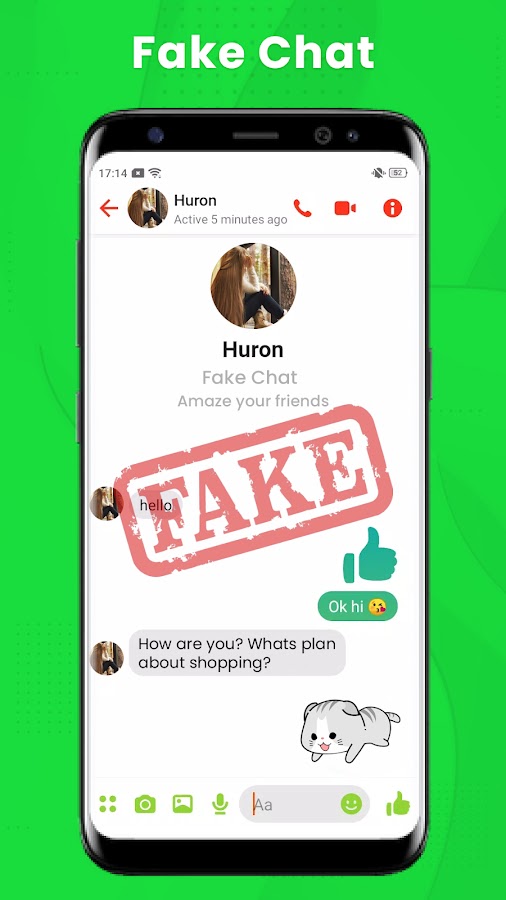 Давайте создадим prank text с друзьями, используя приложение для Android фильм fake chat — whatsfake, чтобы совершать фальшивые звонки и фальшивые чаты. Создайте чат переписки с самим собой какой хотите и удивите свою девушку. Создавайте поддельные профили своей подруги и мысленно придумывайте истории в чате. Следовательно, Fake Chat and Fake Call — это чисто развлекательное приложение, в котором инструмент для создания фальшивого чата используется для заполнения других в вашем списке контактов.