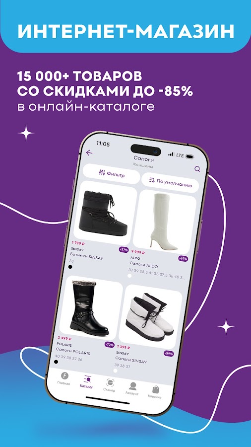 В нашей сети представлено более 6500 брендов со скидками до -85%. Скачивайте мобильное приложение, чтобы совершать покупки не выходя из дома.