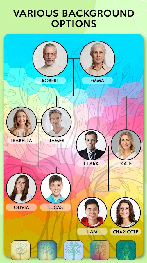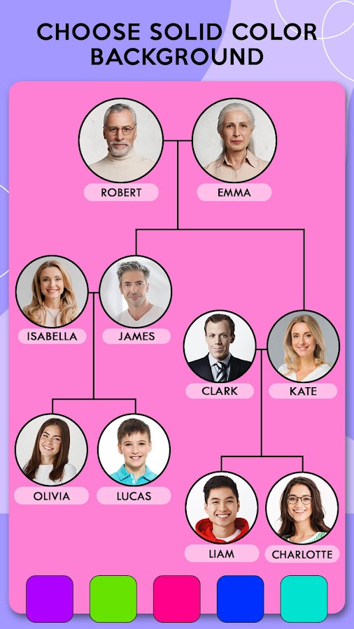 Это создатель коллажа для фотошопа Family Tree — это простое и простое в использовании приложение, просто заполните детали членов вашей семьи и выберите семейные изображения, добавьте фотографии и получите родословную.
