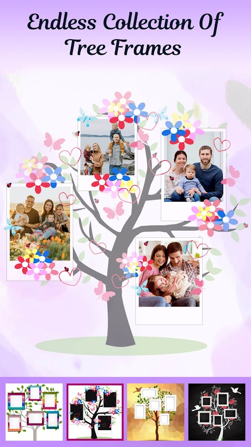 Семейные фоторамки — это новейший и творческий создатель семейного дерева и редактор фотографий для ваших фотографий! С помощью этого приложения вы можете комбинировать обычные фотографии с сказочной родословной. Его помощь в синдикации всей вашей семейной памяти в одном месте с уникальным генеалогическим древом и обожанием с помощью эффектов фотоэффектов.