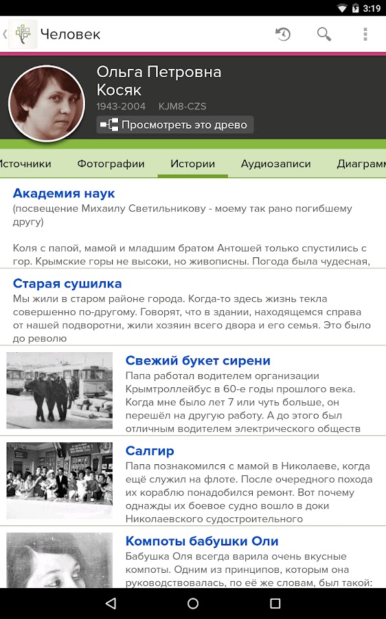Ваша семейная история – это история о вас. Взяв с собой телефон или планшет, вы можете где угодно с помощью приложения Древо FamilySearch добавлять и редактировать семейно-историческую информацию, а также делиться ею. Поскольку приложение синхронизируется с сайтом FamilySearch, сделанные вами изменения будут доступны на любых устройствах.