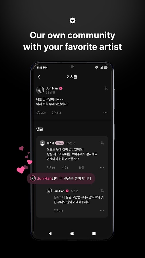 • Наслаждайтесь всем: от ежедневных историй артистов до забавных взаимодействий с фанатами.