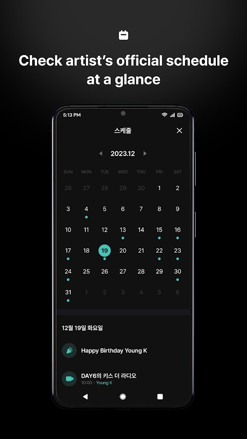 • Мгновенно проверяйте важные расписания, такие как релизы альбомов, концерты, юбилеи и официальные графики.