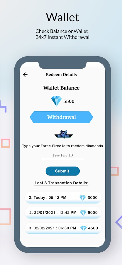 всякий раз, когда пользователь превышает минимальные требования Faree — Firee Diamonds для выкупа, он может отправить запрос на выкуп, указав данные ff id.