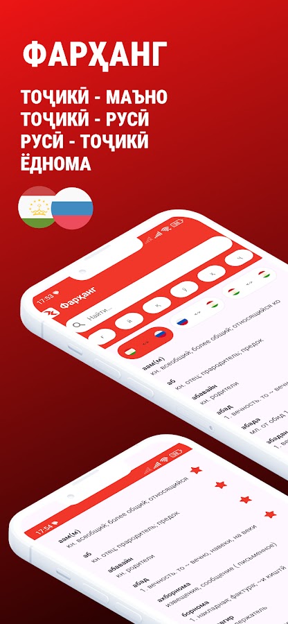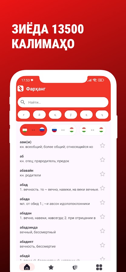 Фарханг – это специализированное приложение, работающее на устройствах Android, совершенно бесплатное и включающее в себя сразу три словаря.