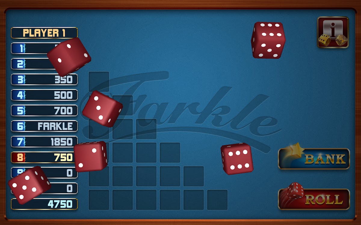 Существует множество вариаций правил игры в кубики Farkle. Некоторые позволяют вам вносить свой счет в банк, когда захотите, другие требуют минимального счета. Мы даем вам возможность выбора.