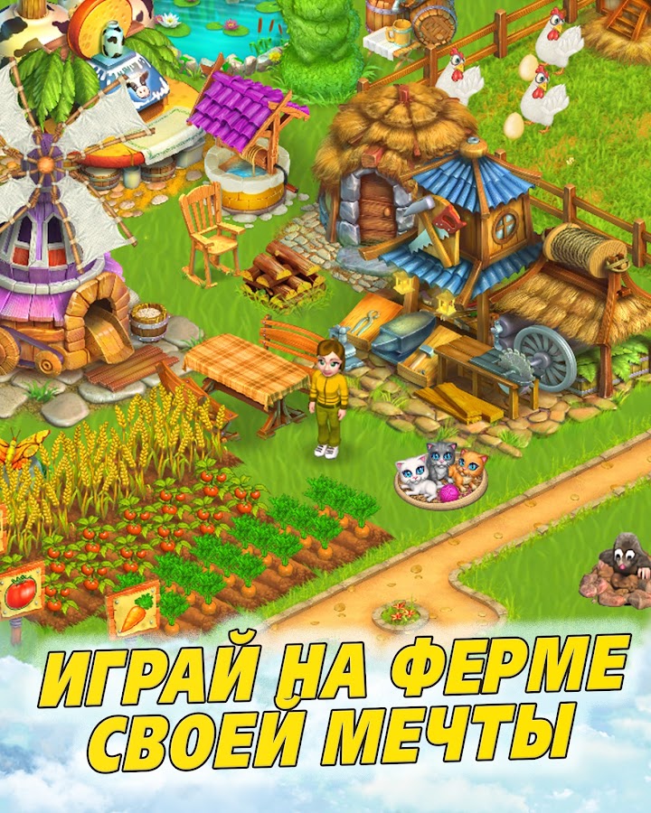 Как и в игре «Счастливая ферма», здесь очень легко выращивать и собирать растения с грядок, готовить еду и строить свою фермерскую деревню.