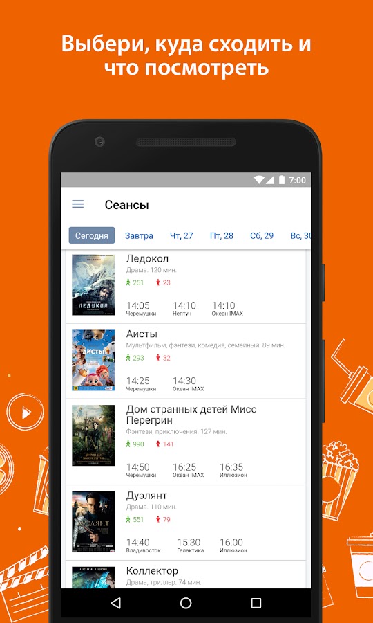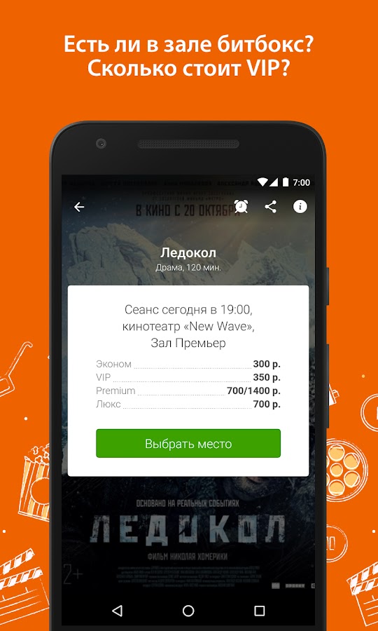— Всегда актуальная информация о свободных местах в кинотеатрах.