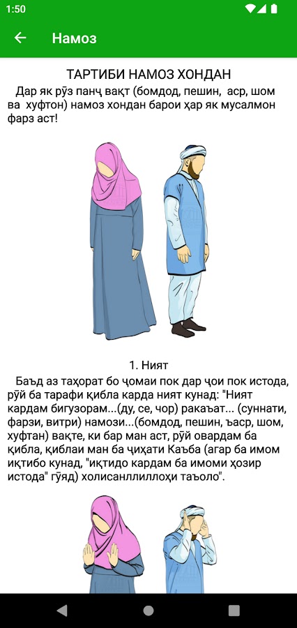 Омӯзиши намоз ва таҳорат. Намози мардона ва занона қадам бо қадам.