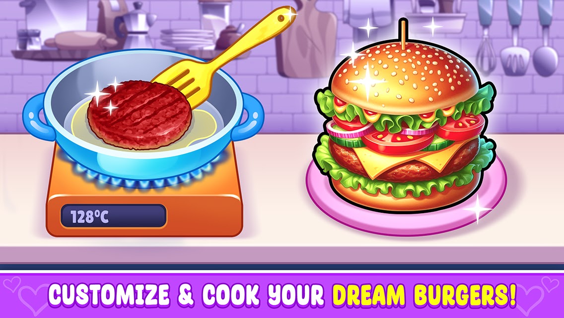 Добро пожаловать в игру по приготовлению фаст-фуда, где вы можете узнать, как приготовить каждый рецепт, например гамбургер, сэндвич, картофель фри и сок. Это включает в себя каждый шаг рецепта в интерактивном методе, позволяющем выполнять все задачи по приготовлению еды. Используйте сотни вкусных ингредиентов, чтобы приготовить блюда самого высокого качества. Так что возьмите ложку и лопатку и начните смешивать, готовить, жарить и тушить в этой игре на приготовление еды! У нас есть для вас несколько рецептов в этой кулинарной игре.